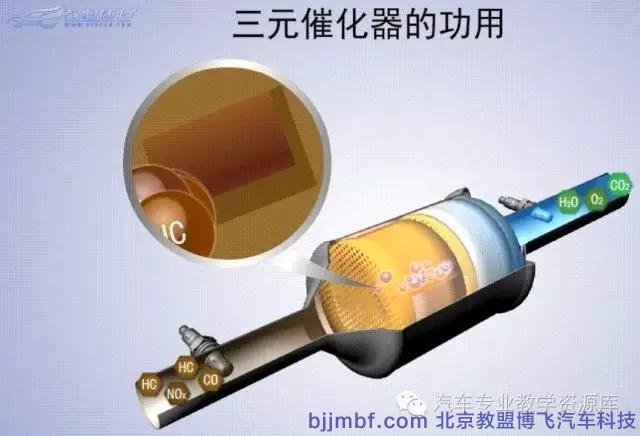 汽車尾氣中的主要有害氣體有一氧化碳(CO)、氮氧化合物(NO)、碳氫化合物(HC)。三元催化就是利用一些化學劑,與尾氣中的有害氣體進行一系列的化學反應,使其轉(zhuǎn)換為無害的氣體。
