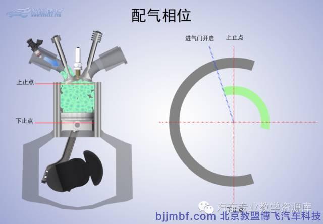 發(fā)動(dòng)機(jī)在換氣過(guò)程中,若能夠做到排氣徹底、進(jìn)氣充分,則可以提高充氣系數(shù),增大發(fā)動(dòng)機(jī)的輸出功率。四沖程的每個(gè)工作行程,其曲軸要轉(zhuǎn)180°。現(xiàn)代發(fā)動(dòng)機(jī)轉(zhuǎn)速很高,一個(gè)行程經(jīng)歷的時(shí)間很短(如上海桑塔納的四沖程的發(fā)動(dòng)機(jī),在最大功率的發(fā)動(dòng)機(jī)轉(zhuǎn)速達(dá)5600r/min,一個(gè)行程的時(shí)間只有0.0054s)。這樣短時(shí)間的進(jìn)氣和排氣過(guò)程往往會(huì)使發(fā)動(dòng)機(jī)充氣不足或者排氣不凈,從而使發(fā)動(dòng)機(jī)功率下降。因此,現(xiàn)在發(fā)動(dòng)機(jī)都延長(zhǎng)進(jìn)、排氣時(shí)間,即氣門的開(kāi)啟和關(guān)閉時(shí)刻并不正好是活塞處于上止點(diǎn)和下止點(diǎn)的時(shí)刻,而是分別提前或延遲一定的曲軸轉(zhuǎn)角,以改善進(jìn)、排氣狀況,從而提高發(fā)動(dòng)機(jī)動(dòng)力性。