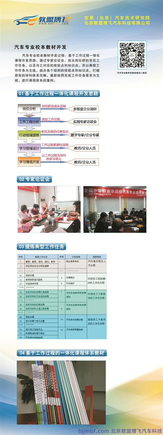 北京教盟博飛汽車科技有限公司是安萊(北京)汽車技術(shù)研究院投資,是以教學(xué)輔助信息平臺為汽車專業(yè)院校訂制開發(fā)實戰(zhàn)教學(xué)資源庫,拍攝制作實訓(xùn)精品課程以及校本教材。同時,邀約國家級汽車行業(yè)專家指導(dǎo)技能大賽和專業(yè)建設(shè),提供高品質(zhì)師資培訓(xùn)等等。全方位支持院校打造國家級汽車示范專業(yè)!