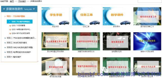 汽車維護(hù)多媒體微課件由項(xiàng)目與任務(wù)組成,包含6個(gè)大項(xiàng)目、31個(gè)任務(wù)。每個(gè)任務(wù)中都有學(xué)生手冊(cè)、任務(wù)工單、教學(xué)課件、實(shí)訓(xùn)視頻、動(dòng)畫(huà)等資源。