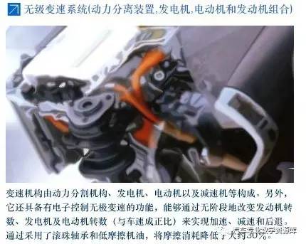 首次采用的無級變速系統(tǒng)通過無階段地改變發(fā)動機(jī)轉(zhuǎn)速、發(fā)電機(jī)及交流永磁式電動機(jī)轉(zhuǎn)數(shù)(與車速成正比)來實(shí)現(xiàn)加速、減速和后退;通過采用了滾珠軸承和低摩擦機(jī)油,將摩擦消耗降低了30%左右。
