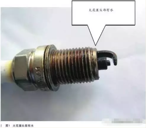 那么火花塞頭部潮濕的液體是什么?無意中聞了一下它的氣味,發(fā)現(xiàn)不對勁,基本上聞不到汽油味,答案只有一個,那就是水(防凍液),如圖1所示。