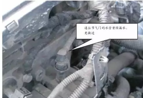 汽缸里有很多水當(dāng)然無法點(diǎn)燃混合氣,也就無法啟動車輛。奇怪,水是哪兒來的?是汽缸墊滲水還是缸體或者缸蓋有裂紋?再次詢問客戶得知,該車前段時間曾經(jīng)因為連接節(jié)氣門和節(jié)溫器的小水管漏水,拋錨在路上。
