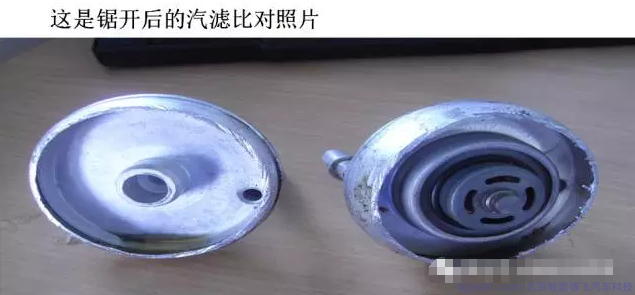 接著我們從用戶那里了解到,故障是從更換了機油三濾以后開始出現(xiàn)的。于是我們重點檢查了汽濾,終于發(fā)現(xiàn)了問題。朗逸的汽濾應該是:180 201 511 不帶壓力調節(jié)器,它的壓力調節(jié)器是裝在油泵中的。而車上現(xiàn)在裝的是6Q0201 051 C帶4bar壓力調節(jié)器的汽濾。