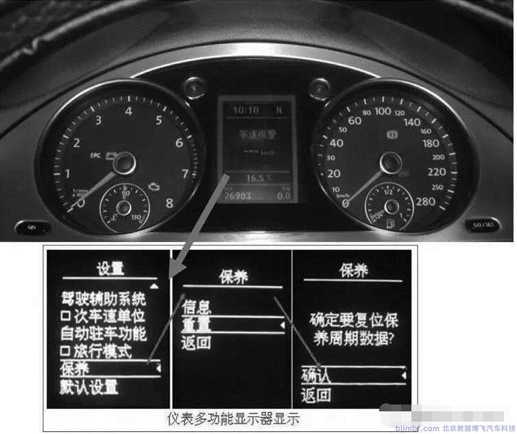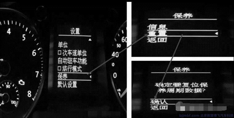 通過多功能方向盤上的按鍵進行保養(yǎng)周期復位的方法。