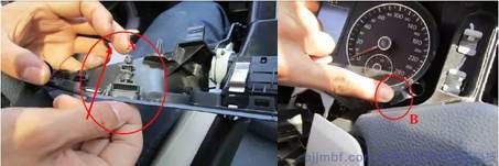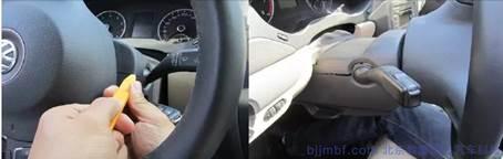 1.用壓板將轉(zhuǎn)向柱上護(hù)板拆下(圖下所示)