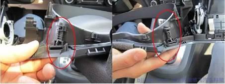 5.注意:將組合儀表出風(fēng)口拆下后,檢查出風(fēng)口卡子是否有掉的(卡子很容易掉),如果掉了,一定要找到,否則掉在車(chē)?yán)镘?chē)輛在行使中會(huì)產(chǎn)生噪音,出風(fēng)口共有九個(gè)卡子(圖下所示)