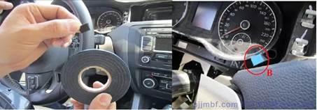 1.把一面帶膠的毛氈(依據(jù)情況,合適的選擇毛氈的厚度)墊在下圖中B 儀表清零按鈕上,減小了出風(fēng)口健與儀表清零按鈕件的距離,使其能夠全面接觸或擠壓。 ?