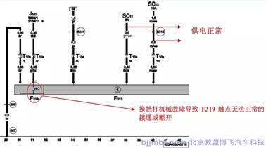 換擋桿機(jī)械故障導(dǎo)致F319觸點(diǎn)無法正常的接通或斷開,導(dǎo)致車鑰匙無法正常拔出?