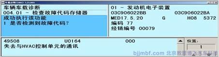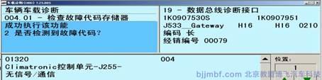 ?行駛3 天后,該故障再次出現(xiàn),經(jīng)銷商技術經(jīng)理親自診斷故障,并檢查了相關線路,未發(fā)現(xiàn)異常,當重新將空調(diào)控制單元安裝到車上后,空調(diào)控制單元可以進行通訊了,且空調(diào)、暖風恢復了正常!于是仔細檢查了線束插腳未發(fā)現(xiàn)問題后,將客戶車輛交付用戶繼續(xù)跟蹤,行駛4 天后,再次出現(xiàn)同樣的故障,因為初春,天氣較冷,暖風無法工作,客戶抱怨較大。