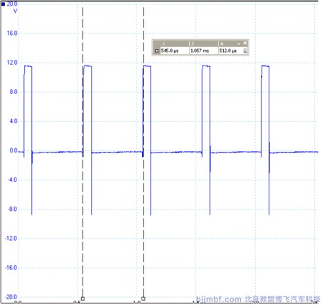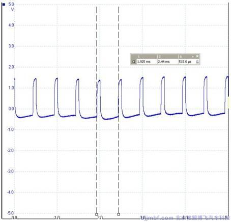 可見(jiàn),線路干擾造成了 G28在發(fā)動(dòng)機(jī)沒(méi)有運(yùn)轉(zhuǎn)的情況下而產(chǎn)生了“轉(zhuǎn)速信號(hào)”,信號(hào)周期為 515μs該信號(hào)在開(kāi)鑰匙門(mén) 5秒左右就消失了,觀察發(fā)現(xiàn)只有節(jié)流閥體在開(kāi)鑰匙門(mén)時(shí)工作,且工作 5秒左右就停止工作。