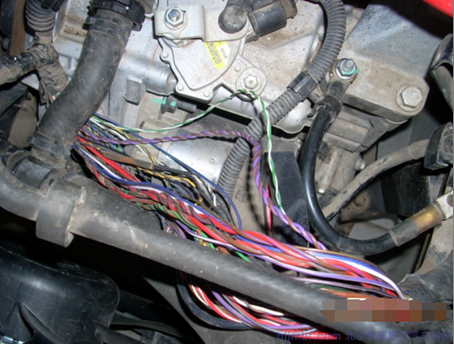 檢查發(fā)現(xiàn)這兩組線路正好捆扎在一段線束內(nèi)。拋開(kāi)線束檢查,發(fā)現(xiàn)線束內(nèi)有大量積水,詢問(wèn)車(chē)主得知,不久前曾清洗過(guò)發(fā)動(dòng)機(jī)艙。