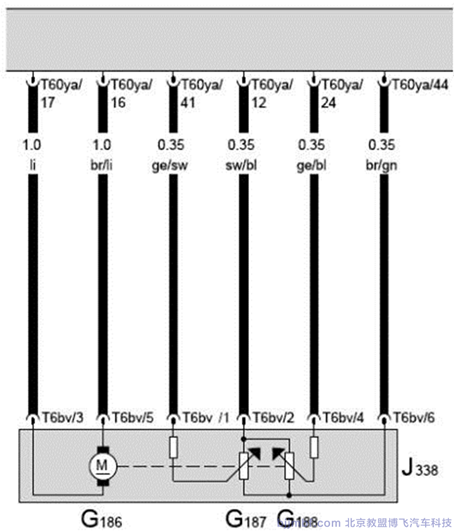從上面圖片中可以看出,G28信號(hào)及G186驅(qū)動(dòng)線在線束中均為絞接纏繞,其目的就是為了避免干擾和防止信號(hào)泄露造成干擾。在線束內(nèi)進(jìn)水的情況下,相當(dāng)于在導(dǎo)線之間充入了導(dǎo)電介質(zhì),形成了“電容”。勢(shì)必造成信號(hào)干擾。