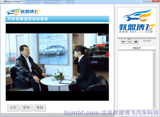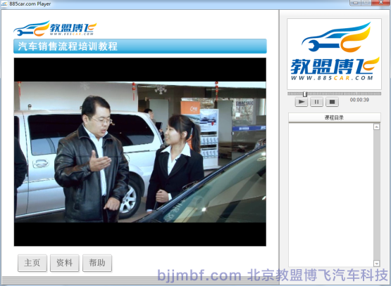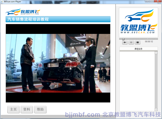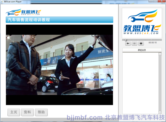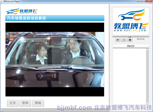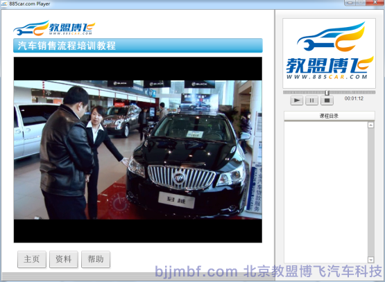 《汽車銷售流程視頻教程》全景視頻教學(xué)系統(tǒng)結(jié)合廠家標(biāo)準(zhǔn)服務(wù)規(guī)范流程,標(biāo)準(zhǔn)化操作完成預(yù)約客戶、接車、維修質(zhì)檢、結(jié)算交車跟蹤服務(wù)等一系列完整售后服務(wù)流程;教學(xué)系統(tǒng)運(yùn)用平面、視頻、多維動(dòng)畫技術(shù)形成一套集講授、實(shí)景演示、重點(diǎn)回顧、原廠服務(wù)商務(wù)標(biāo)準(zhǔn)等立體視頻教學(xué)系統(tǒng);完整詳細(xì)的汽車服務(wù)過程中標(biāo)準(zhǔn)流程,服務(wù)禮儀、標(biāo)準(zhǔn)話術(shù)、各種細(xì)節(jié)及服務(wù)技巧;彌補(bǔ)傳統(tǒng)視頻畫面單一,重點(diǎn)不突出,標(biāo)準(zhǔn)規(guī)范不明顯等缺點(diǎn);立體視頻教學(xué)系統(tǒng)同時(shí)具備一定的自動(dòng)考核、教學(xué)環(huán)境識(shí)別等功能,從而提高學(xué)習(xí)和訓(xùn)練效率。