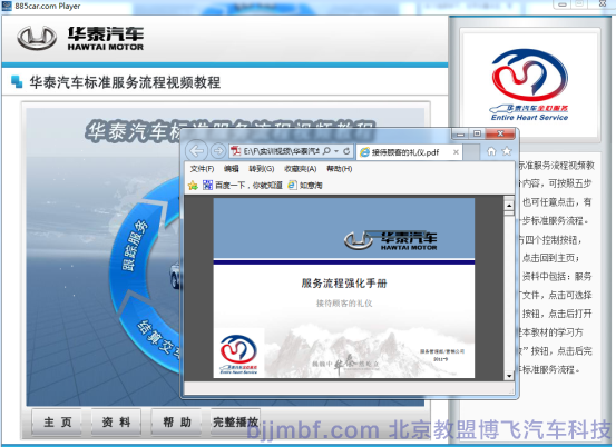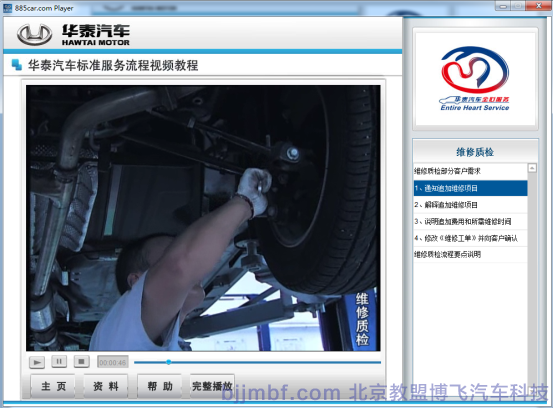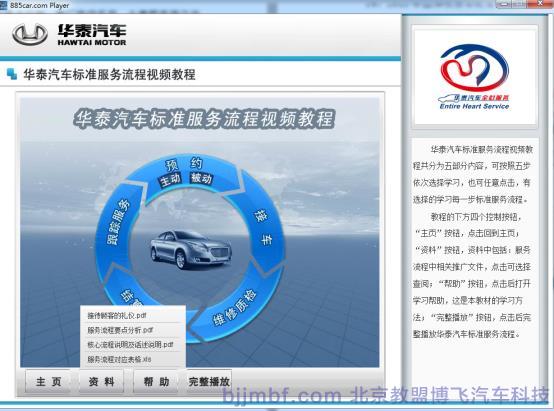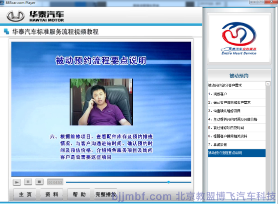 《汽車標(biāo)準(zhǔn)服務(wù)流程視頻教程》全景視頻教學(xué)系統(tǒng)結(jié)合廠家標(biāo)準(zhǔn)服務(wù)規(guī)范流程,標(biāo)準(zhǔn)化操作完成預(yù)約客戶、接車、維修質(zhì)檢、結(jié)算交車跟蹤服務(wù)等一系列完整售后服務(wù)流程;教學(xué)系統(tǒng)運(yùn)用平面、視頻、多維動畫技術(shù)形成一套集講授、實景演示、重點(diǎn)回顧、原廠服務(wù)商務(wù)標(biāo)準(zhǔn)等立體視頻教學(xué)系統(tǒng);完整詳細(xì)的汽車服務(wù)過程中標(biāo)準(zhǔn)流程,服務(wù)禮儀、標(biāo)準(zhǔn)話術(shù)、各種細(xì)節(jié)及服務(wù)技巧;彌補(bǔ)傳統(tǒng)視頻畫面單一,重點(diǎn)不突出,標(biāo)準(zhǔn)規(guī)范不明顯等缺點(diǎn);立體視頻教學(xué)系統(tǒng)同時具備一定的自動考核、教學(xué)環(huán)境識別等功能,從而提高學(xué)習(xí)和訓(xùn)練效率。
